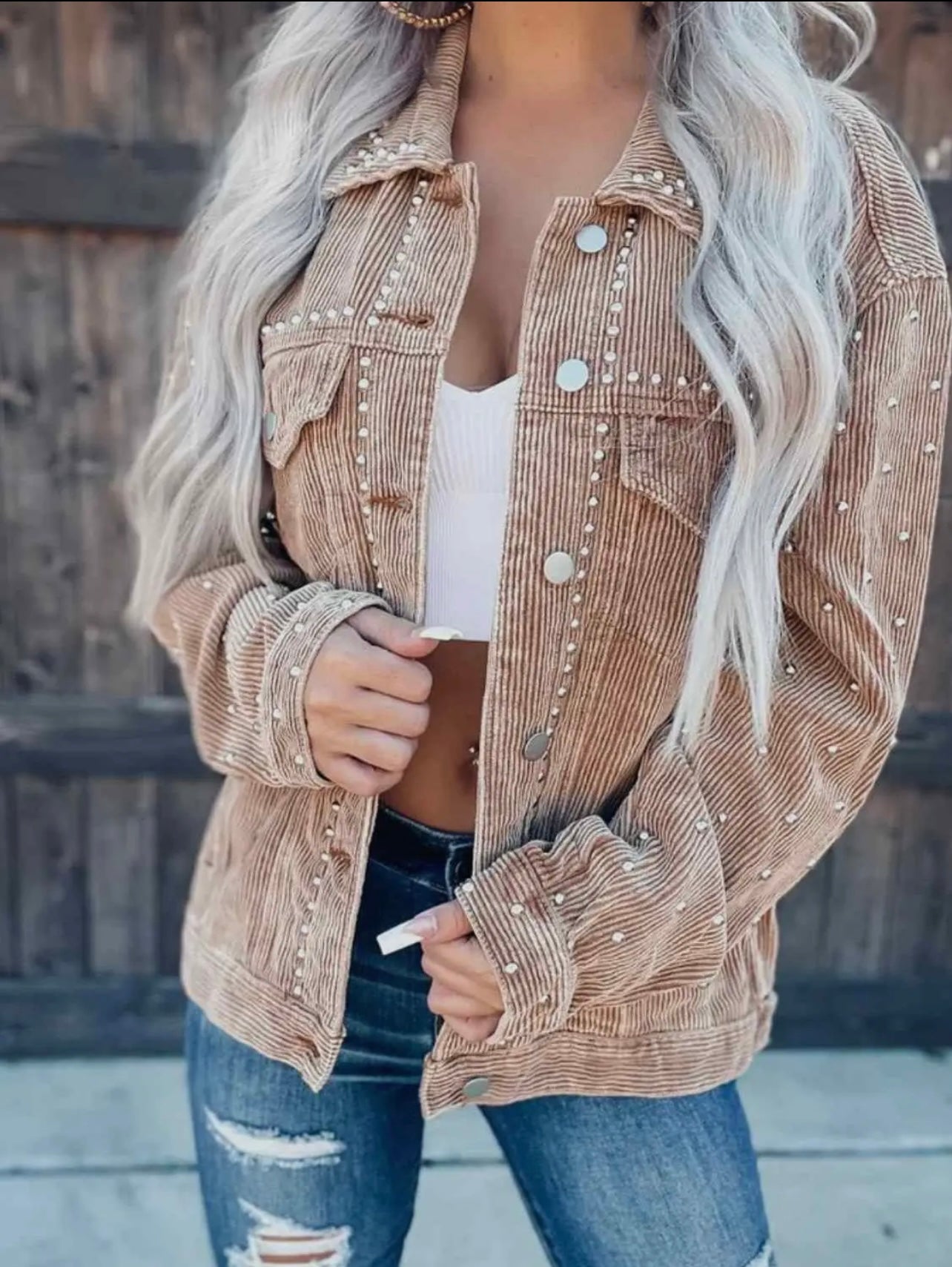 Get ready for Fall with this studded button down Jacket! This is perfect for all of your fall festivities and much more! this jacket is super comfy and cozy and won't last long!